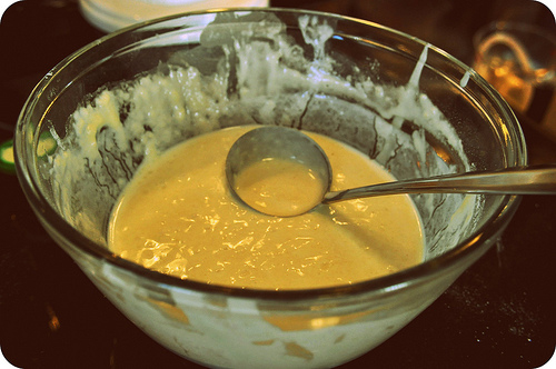 I’ve encountered my first Retro Recipe fail.  Don’t ask me how but I managed to fail at pancakes.  How sad is that?  Flour, milk, butter, baking powder, egg, and sugar.  Should be easy, no?  The recipe was easy but the results were gummy.  After the first batch came off the griddle and I realized that things were a bit off, I added more milk to thin the sturdy batter out.  Second batch went in the pan.  Still gummy.  More milk was added.  Third batch?  You guessed it, gummy.