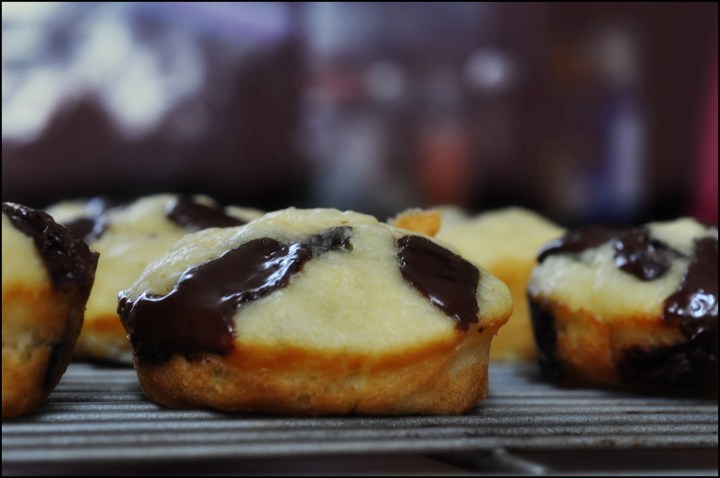 Using an icecream scoop, scoop the batter into the muffin tin.  Bake for 8 to 10 minutes until a tester inserted into the center comes out clean.  Cool in the pan for 5 minutes and then transfer them to a cooling rack to cool completely.