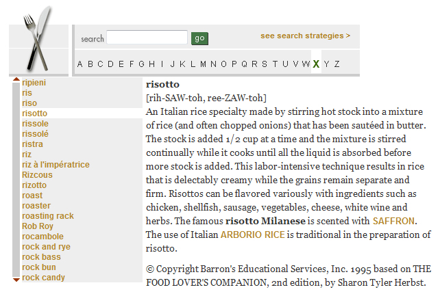 screen shot from epicurious.com