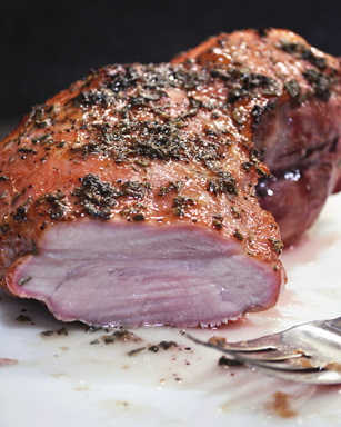 BAH Note: The cider reduction can be made ahead of time and gently warmed on the stove over a very low flame until you are ready to use it to baste the pork.