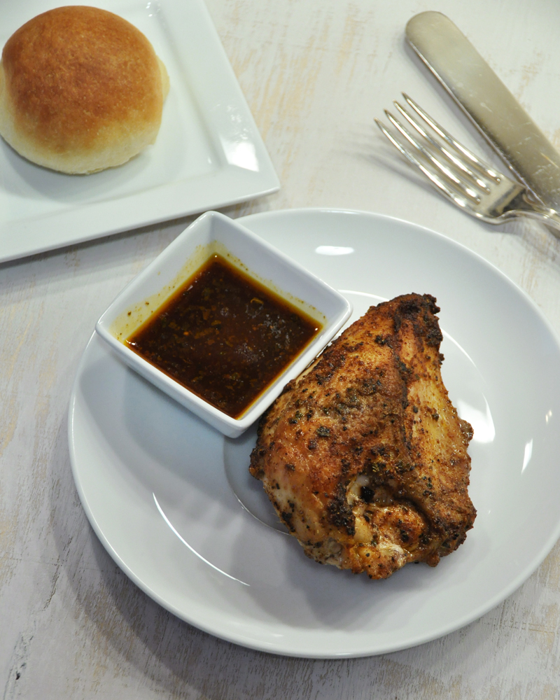 I think I need to test this theory out. And I have the perfect recipe to use as my test subject…Ruth’s Spiced Chicken. The method already has you browning the chicken on the stove and then finishing it off in a hot oven. I’ve made it this way and can attest that the spiced chicken is delightful. I bet that getting crispy roast chicken skin out of my Advantium would be an even bigger delight.