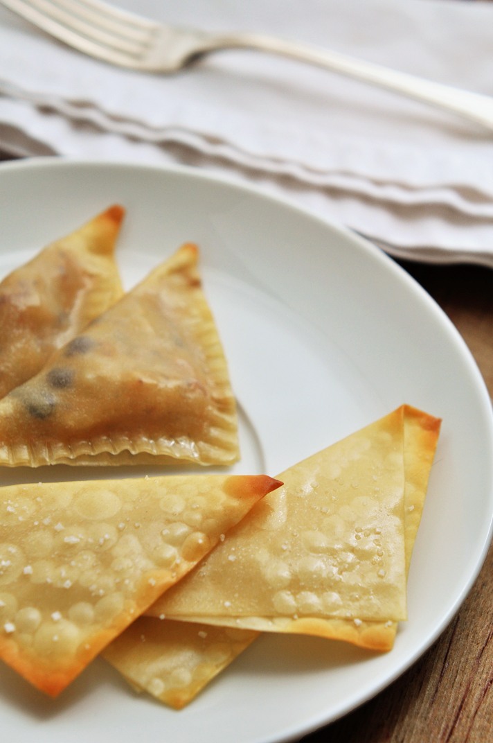 BAH Note: I had more wontons than I had filling, so I baked some up like chips.  You could, if you were so inclined, deconstruct this recipe so that the wonton filling is baked up in a dish like a dip and served with the wonton “chips”.  Either way, black beans + shrimp + cream cheese + strong flavors = major bonus points.